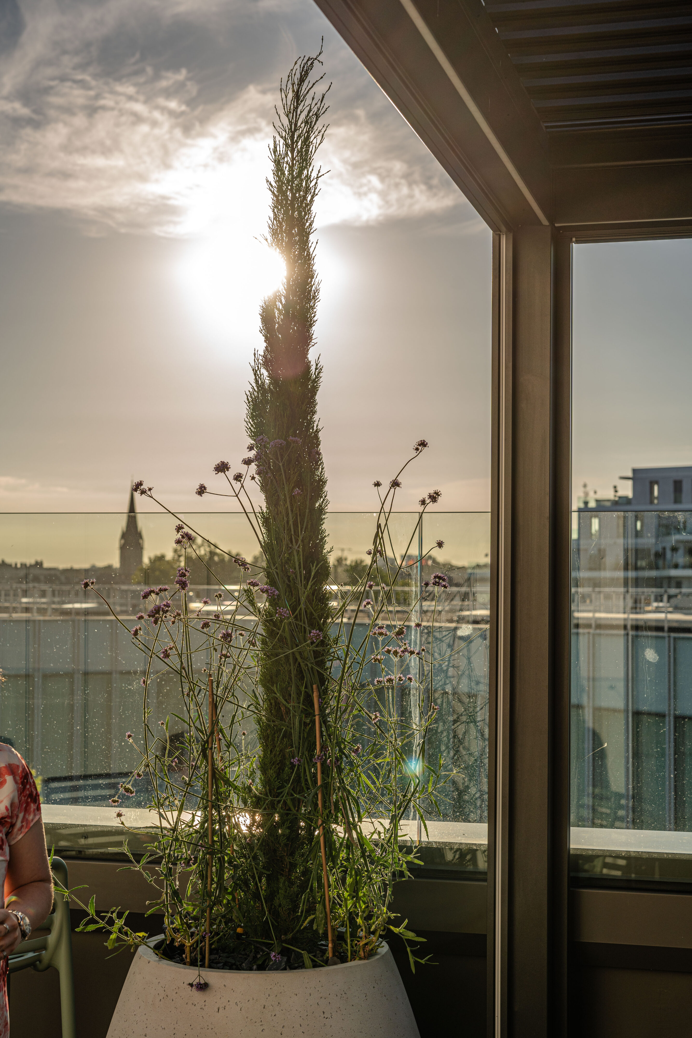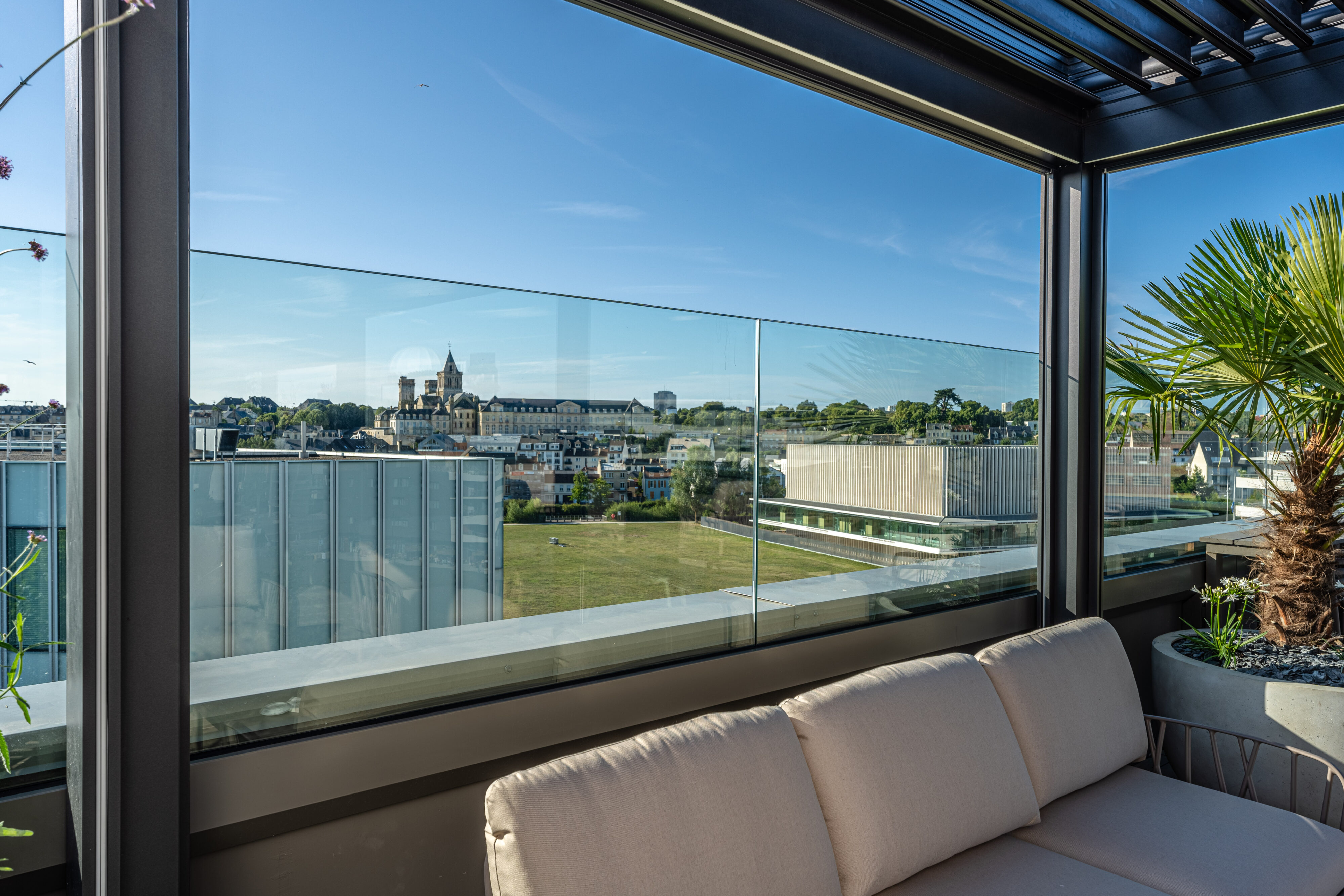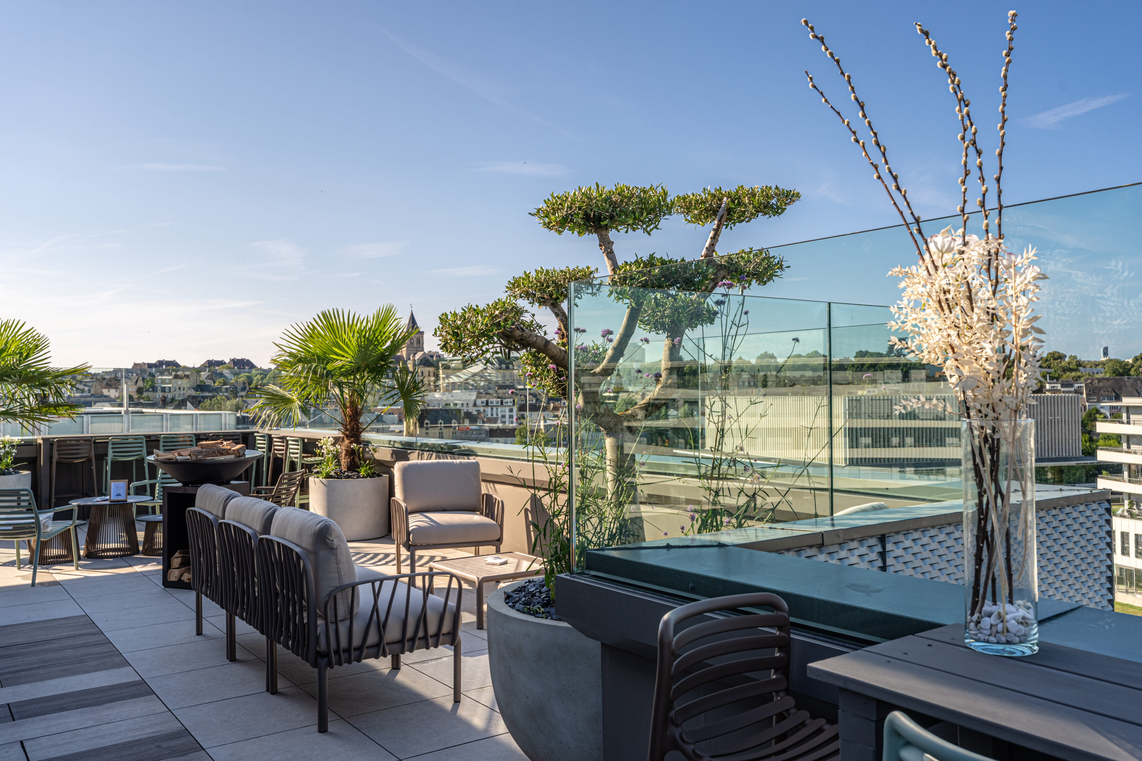 En arrivant sur le Rooftop, vous serez forcément bluffé.e par la vue à 360° sur la ville de Caen et son histoire, ses clochers (Saint-Jean, Saint-Pierre, l’Abbaye-aux-Dames…), de jour comme de nuit, quand le soleil vient se coucher juste au-dessus du château.